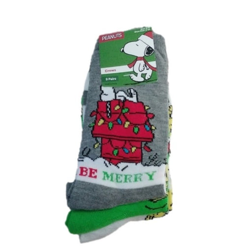Christmas Holiday Peanuts Snoopy Woodstock Crew Socks, Multicolor, 3 pair