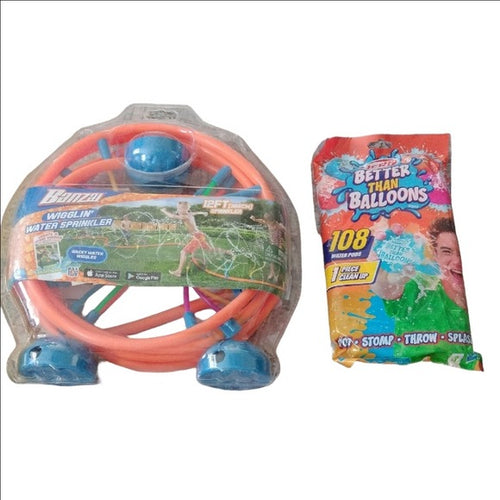 Banzai Wiggly Water Sprinkler & Nerf Better Than Balloons Water Pods (108) Set