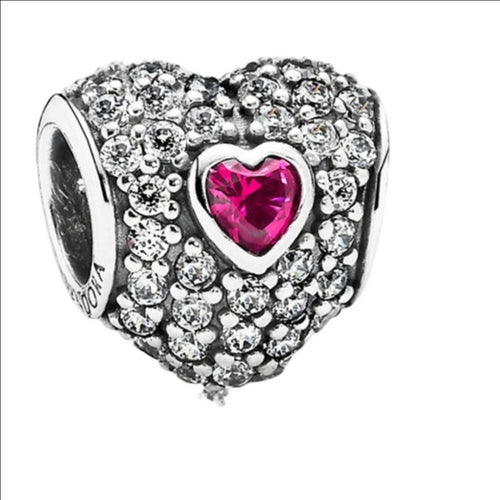 Pandora Retired Sterling Silver Cerise Heart Murano Glass Charm 791664cz