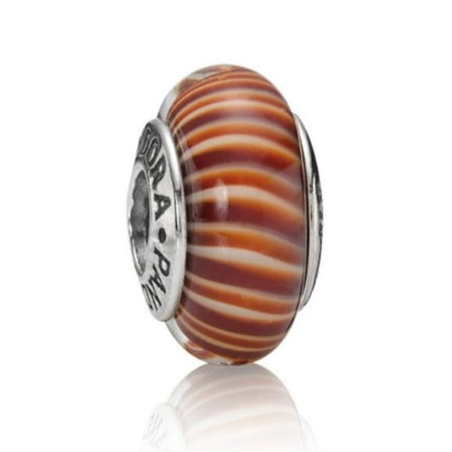 Pandora Retired Cinnamon Murano Glass Bead with Candy Stripes - 790680