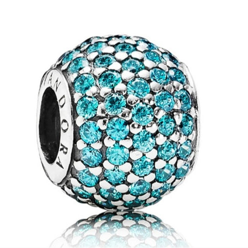 Pandora Retired Sterling Silver Pave Lights Bead with Teal Zirconia - 791051MCZ