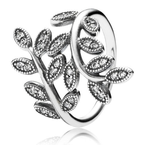 Pandora Sterling Silver Sparkling Leaves Statement Ring w/ CZ 190921CZS Size 8.5