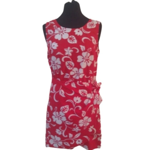 RJC Puanani Red & White Hibiscus Faux Wrap Sleeveless Dress, Medium