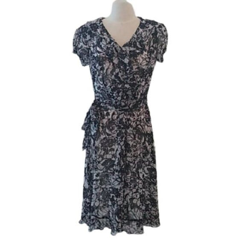 AB Studio Floral Career Dress, Black Multicolor, Size 8