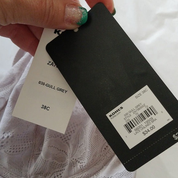 Apt. 9 Lace Unlined Bra, Gull Gray, size 38C