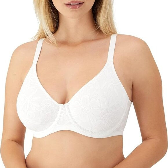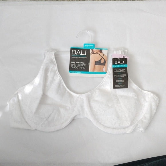 Bali Breathe Lace Underwire Bra, 2-Ply Modal Bra, Convertible, White Lace, 42D