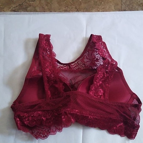 Candie's Long Lace Padded Bra, Tibetan Red, Small