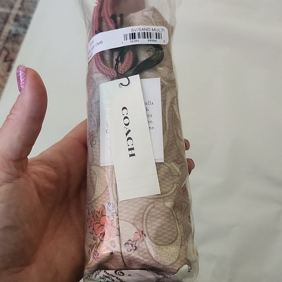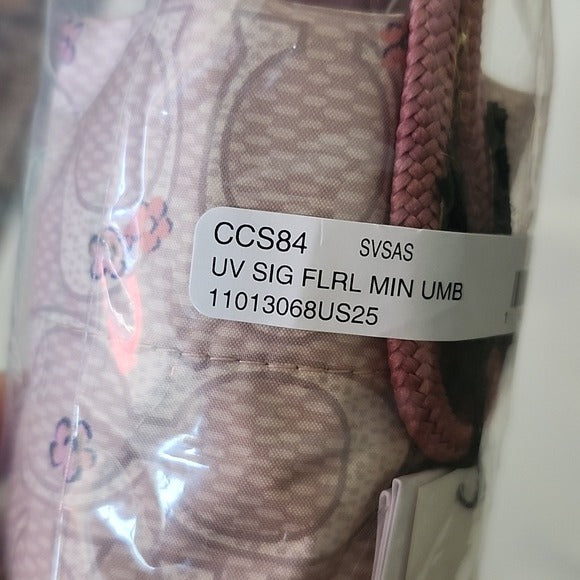 The Coach Floral UV Protection Mini Umbrella CCS84 is a stylish and practical accessory for women. Made of durable nylon material, this pink umbrella features a floral pattern and the signature Coach logo accents. With an automatic opening mechanism, this mini umbrella is perfect for on-the-go use, providing both protection from the sun and the elements. Ideal for adding a touch of feminine charm to any rainy day outfit, this Coach umbrella combines fashion and functionality seamlessly.