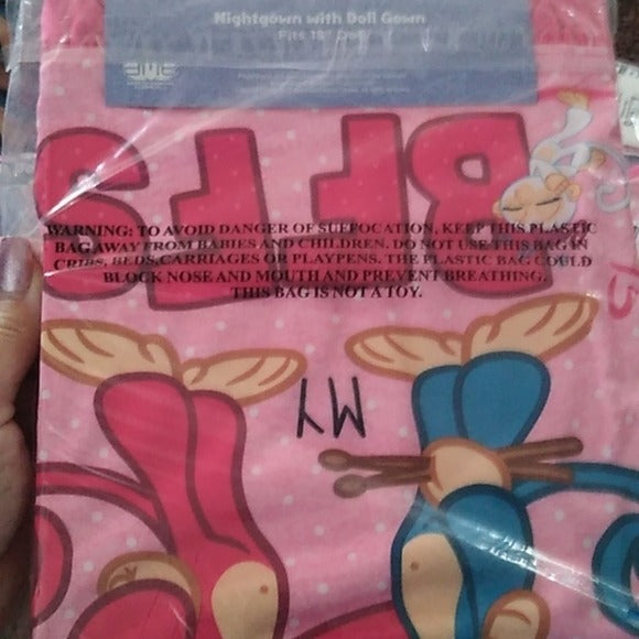 Fingerlings Girls Pajamas Dress Nightgown w/ 18" Doll Gown, Size 8
