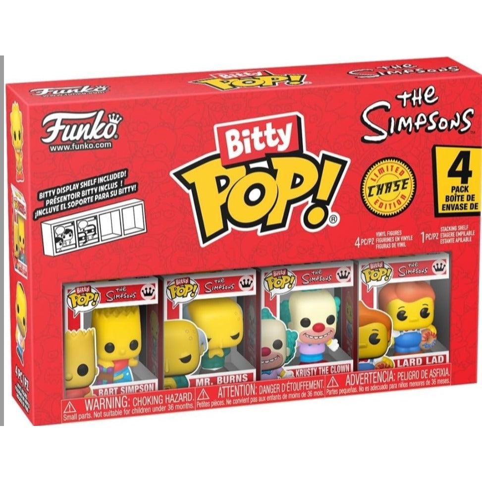 The Funko Bitty Pop! The Simpsons 4-Pack Series 1 is a collection of vinyl figures featuring characters from The Simpsons. With a cute and collectible design, each figure is part of the Bitty Pop! product line by Funko. The set includes four adorable Bitty Pop! figures from The Simpsons franchise, making it a must-have for fans of the TV show. Perfect for adding to a collection or displaying as a fun decorative piece, these figures capture the charm and humor of the beloved animated series. *****The Simpsons do not have a hidden Chase. The packs all contain Bart, Mr. Burns, and Krusty.. Each of the packs then has a 4th bitty. The packs I have show Lard Lad, Fallout Boy, Bartman, and Chief Wiggum. Feel free to request a preference for Chase before purchasing to see if I can accommodate. Otherwise I will send whatever's on top.