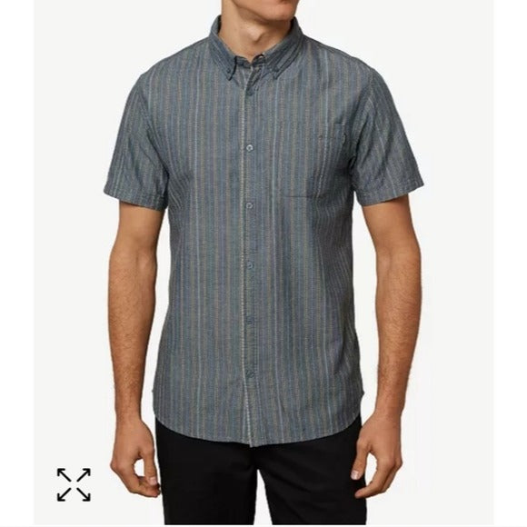 This is an easy to wear button-up shirt that goes great with shorts or jeans. It has a quality cotton, modern design that fits slim through the body and sleeves.