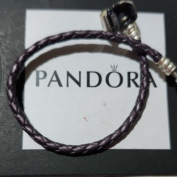 Single Shimmering Purple Leather Bracelet with Pandora Clasp
