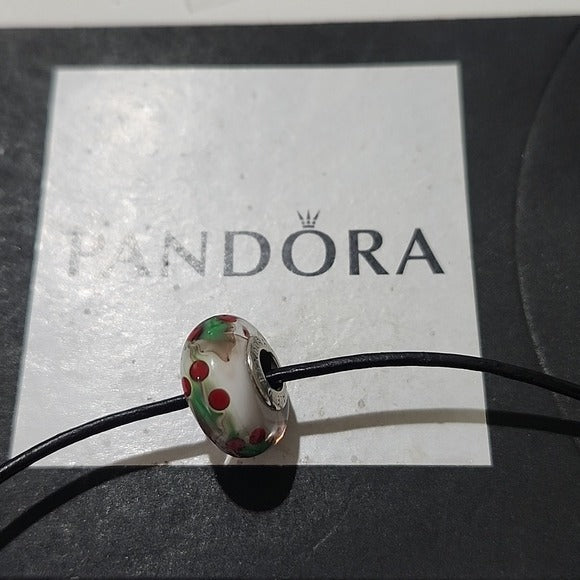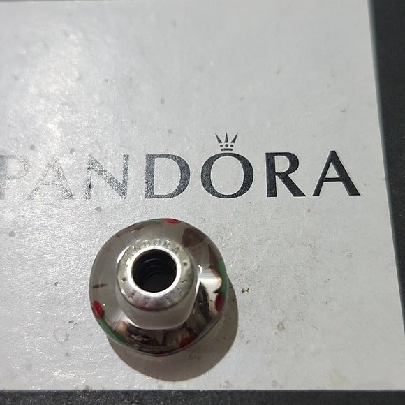 Retired Sterling Silver Christmas Holly Murano Glass Charm - 791647