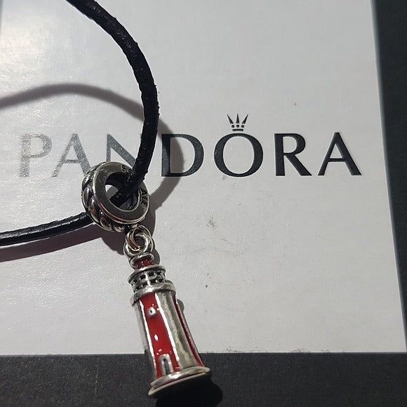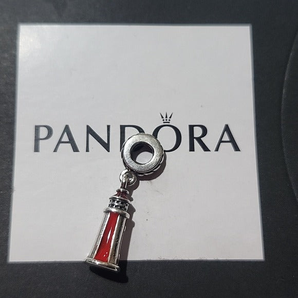 Elegant lighthouse charm in red and silver. Ideal for ocean lovers. Retired Sterling Silver Lighthouse Dangle Nautical Bead with Red Enamel - 791137EN42