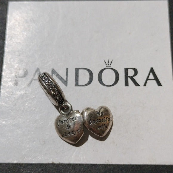 Retired Sterling Silver My Beautiful Wife Family Dangle Charm with Clear Zirconia and Engraving - 791524CZ