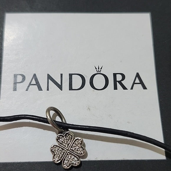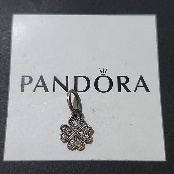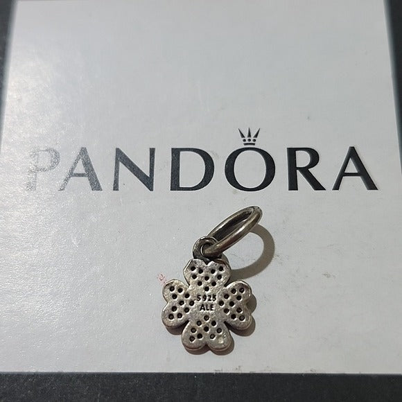 Pandora Retired Sterling Silver Symbol of Lucky in Love Clover Dangle with Clear Zirconia - 791309CZ