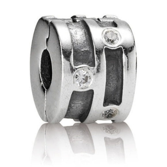 Pandora Sparkling Abstract Clear CZ Barrel Clip 925 ALE 790291cz