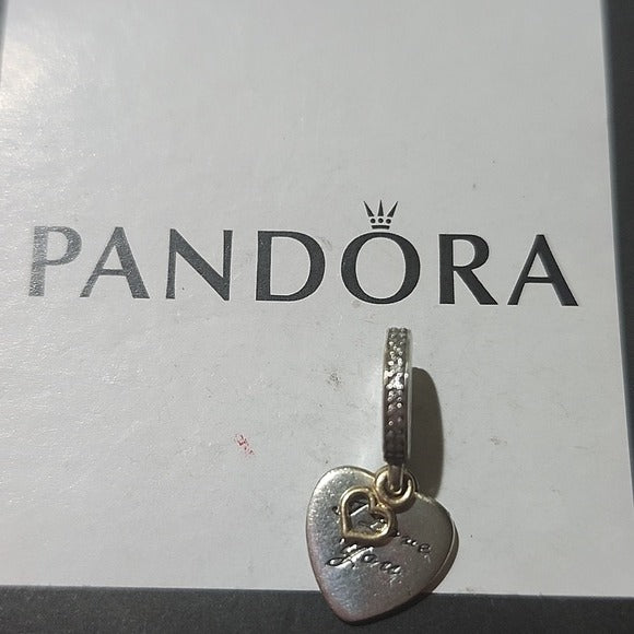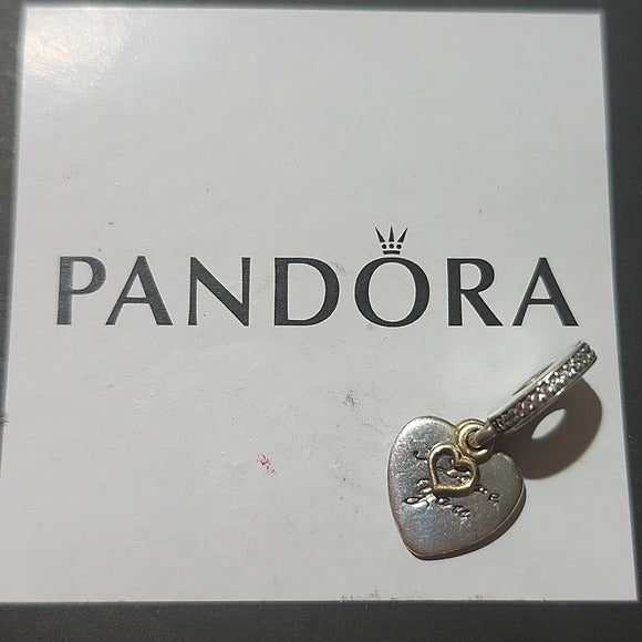 Sterling Silver and 14K Gold Love You Forever Dangle Heart Charm with Clear Zirconia - 792042CZ
