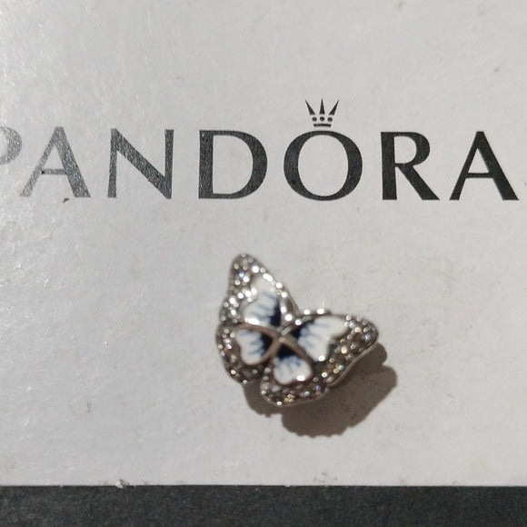 Pandora Sterling Silver Blue Butterfly Charm w/White + Blue Enamel 790761C01