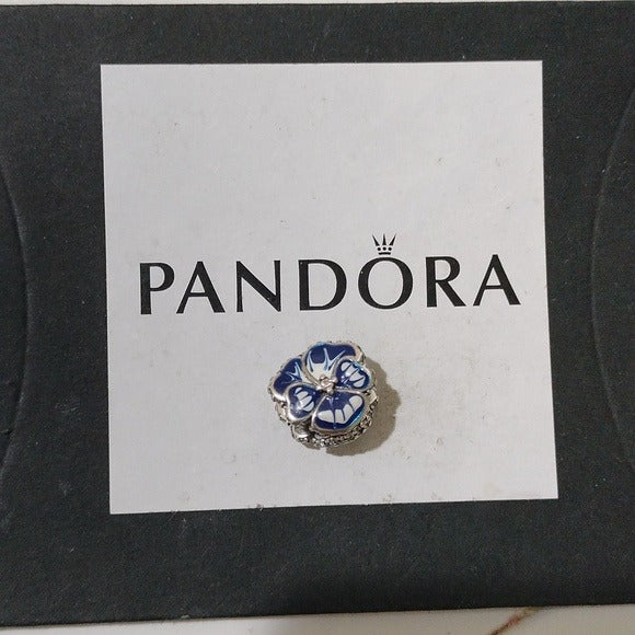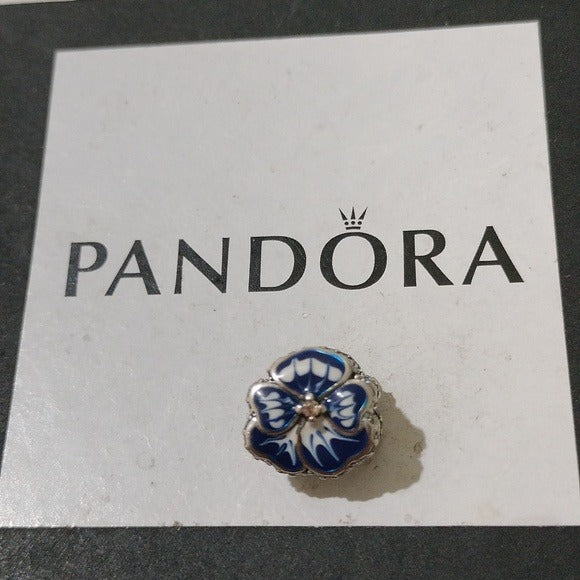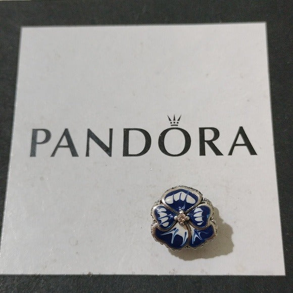 Sterling Silver Blue Pansy Flower Charm with Blue and White Enamel - 790777C02