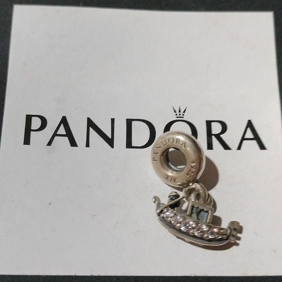 Retired Sterling Silver Gondola Dangle Travel Bead with Clear Zirconia - 791143CZ