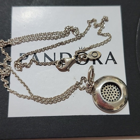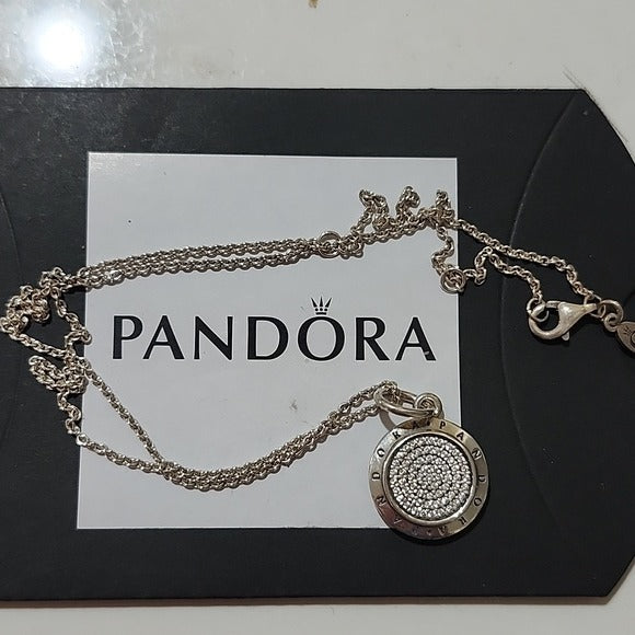 Make a stylish impact with this large circle pendant. With sparkling pave details and an engraved logo, it is a true representation of contemporary Pandora style.