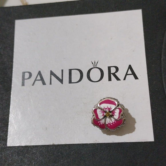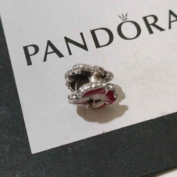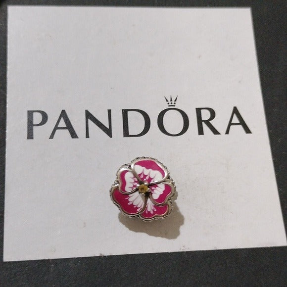Pandora Sterling Silver Pink Pansy Flower Charm w/ Pink & White Enamel 790777c01