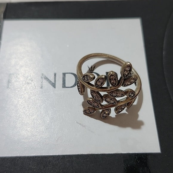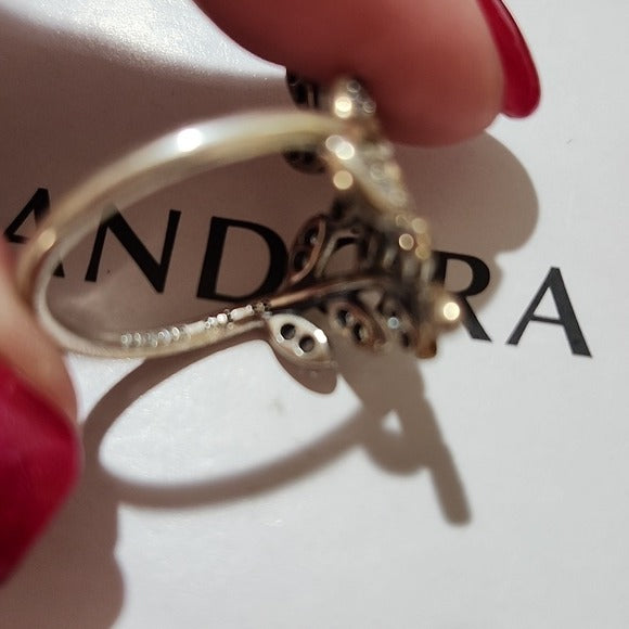 Sterling Silver Sparkling Leaves Statement Ring with Clear Zirconia.