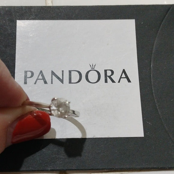 A piece to stand the test of time, this glamorous Sparkling Solitaire ring will make a sophisticated statement in any setting. Hand-finished in sterling silver, the ring features sparkling clear cubic zirconia in a prong setting to elevate the stone from its thin band, which features the Pandora logo on the inside the shank. This ring stacks well with others from this collection to add a little sparkle to your everyday look.