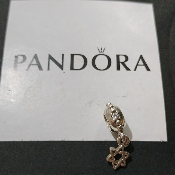 Retired Sterling Silver Star of David Religious Dangle Bead with Clear Zirconia - 791167CZ