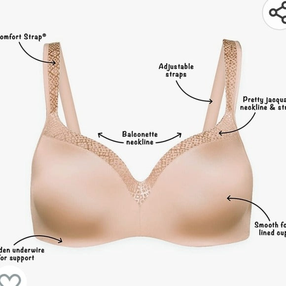 Playtex Secrets 4822 Balconette Underwire Bra, Nude, size 40DD