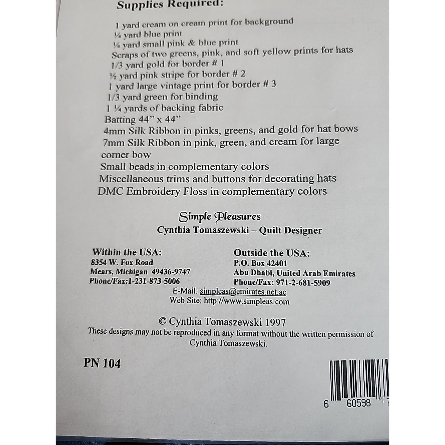 The Simple Pleasures Quilt Pattern ~ Spring Fancy ~ Hats is a charming and whimsical design for a 37" x 37" wall hanging. Made in the United States by the brand Simple Pleasures, this uncut pattern features a delightful Spring Fancy theme with a unique twist on hats. Perfect for quilters looking to add a touch of spring to their home decor, this pattern is sure to bring a playful and creative element to any sewing project.