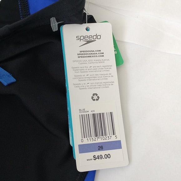 Experience the ultimate in swimwear with Speedo's black and blue swim trunks, designed for optimal performance and style. These trunks feature a sleek, form-fitting design with a dynamic blue accent, ensuring both comfort and a striking visual appeal. Crafted from high-quality materials, they offer excellent compression and water resistance for every swim.