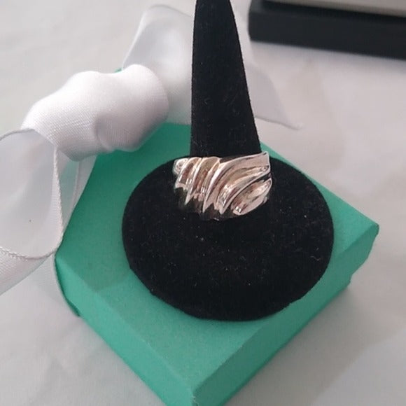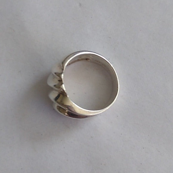 This modernist 925 sterling silver ring features a wavy ridged design, perfect for adding a unique touch to any outfit. The size 6.5 ring exudes elegance and sophistication. Crafted from high-quality silver, this ring is a statement piece that is sure to elevate any look with its sleek and stylish design. Ideal for those who appreciate minimalist and contemporary jewelry.